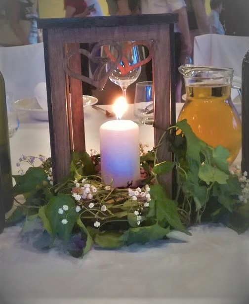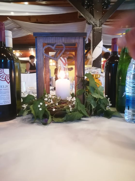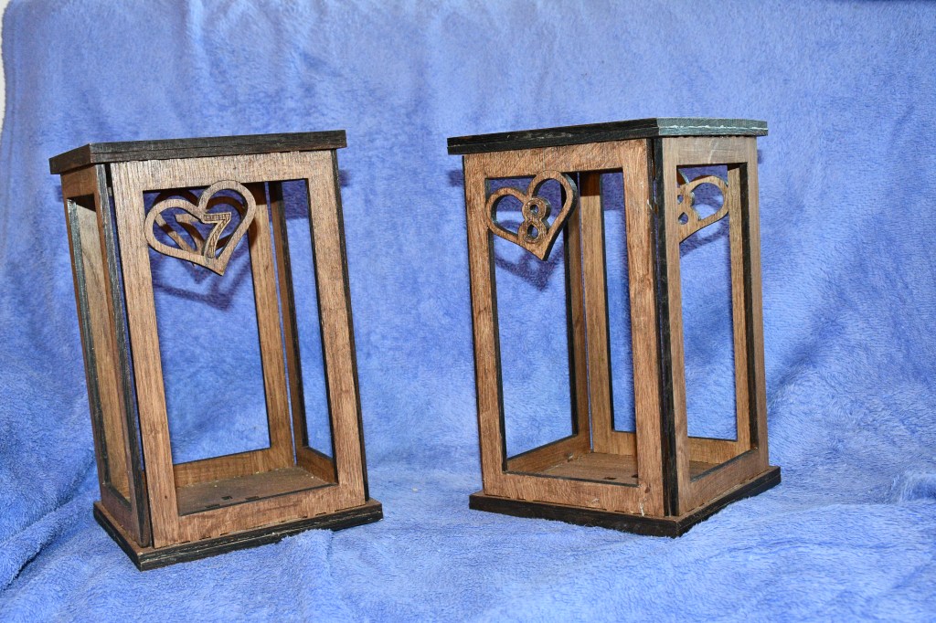 Leterne so izdelane iz masivnega hrastovega lesa in prebarvane z rjavo barvo za les. Na laterni je vrezana tudi številka, ki označuje številko mize.