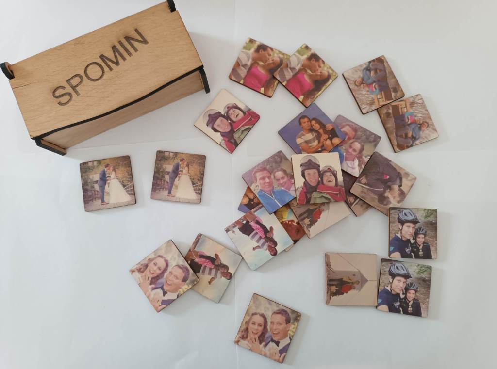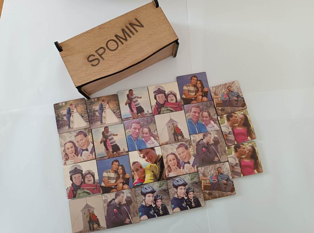Družabna igra personaliziran spomin je igra primerna za vse generacije. Komplet vsebuje 30 lesenih ploščic z vašimi poljubnimi fotografijami. Igra je odlična za krepitev spomina in razvijanje spretnosti opazovanja. Igra je shranjena v priročni leseni škatli in je lahko čudovito darilo za rojstni dan, obletnico poroke, valentinovo, materinski dan,…