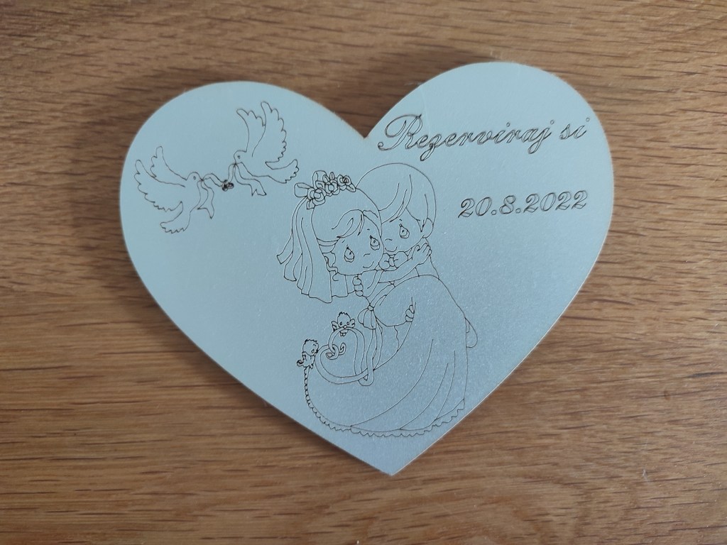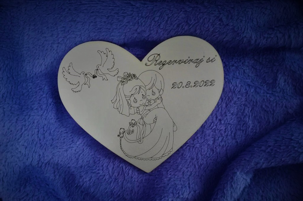 Izdelane so iz kakovostnega lesa – lahko izbirate med vezano ploščo ali masivnim lesom. Prilagodimo jih vašim željam tako po obliki (srce, kvadrat, šestkotnik, pravokotnik ali krog) kot tudi po velikosti. Vsebino na kartici oblikujemo povsem po meri – lahko vključuje koledar z obkroženim datumom, črno-belo ali barvno fotografijo, vajini imeni in druge detajle, ki bodo odražali vajin stil.