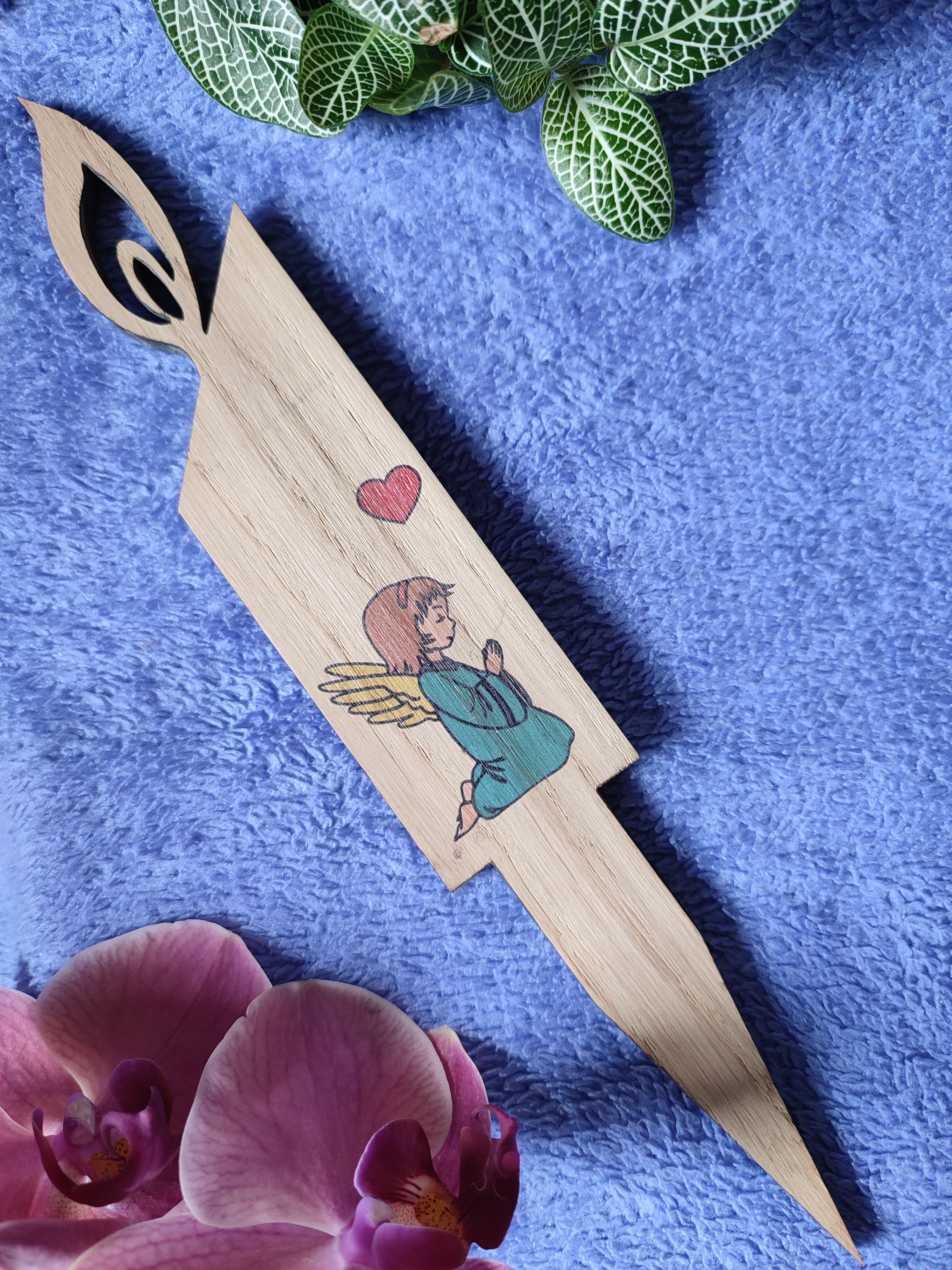 - Motiv: klečeči angel v molitvi s srčkom