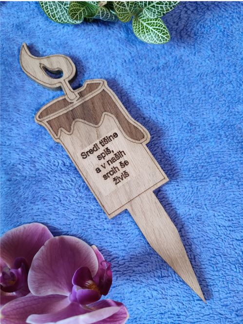 Motiv gravure voska, ki nežno teče po sveči, simbolizira solze spomina in večne ljubezni. Ta svečka izraža tiho spoštovanje in povezanost z dragimi osebami, ki živijo naprej v naših srcih. Izdelana je iz masivnega hrasta, ki zagotavlja dolgo obstojnost ter naraven, spoštljiv videz.
