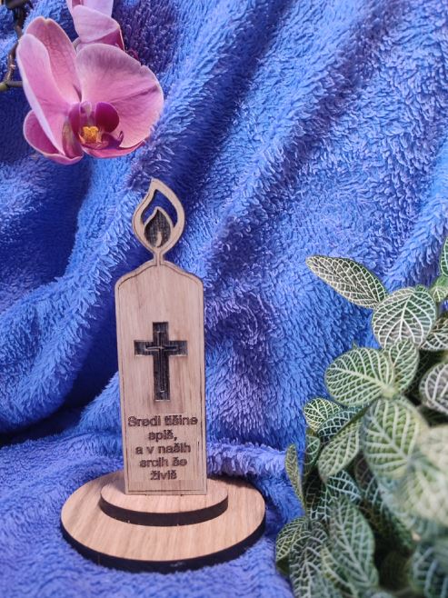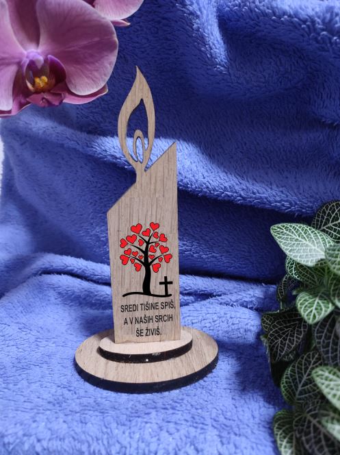 Naj vaš spomin sveti v trajni obliki – z leseno svečko, ki simbolizira večnost in naravno harmonijo.