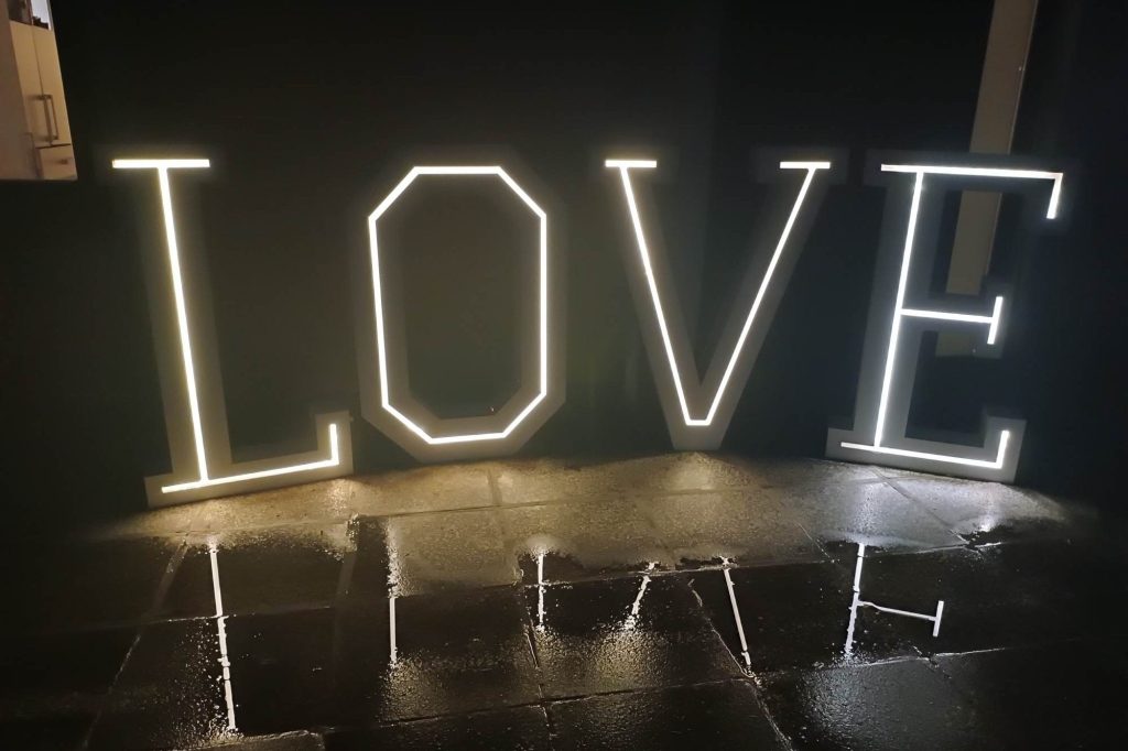 Čudovit svetlobni napis LOVE bo vajin poročni obred ali slavje spremenil v pravo pravljično doživetje. Primeren je za postavitev ob obredu, pri plesišču ali kot del poročnega foto kotička.
