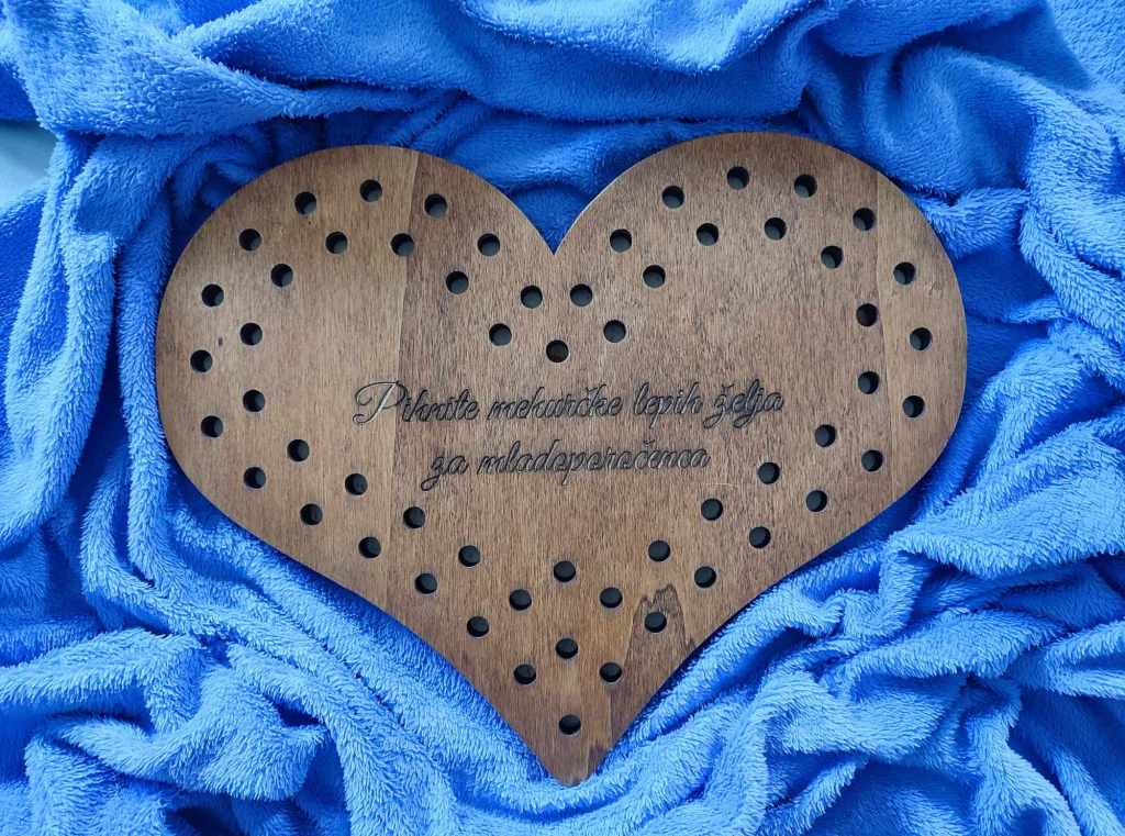 Elegantno leseno stojalo v obliki srca z izrezanimi luknjicami je popolna izbira za poroke, rojstnodnevne zabave in druge posebne priložnosti. V stojalo lahko preprosto namestite milne mehurčke v epruvetkah in tako ustvarite čudovit vizualni element ter čarobno vzdušje. S svojo romantično obliko in praktično zasnovo bo navdušilo tako otroke kot odrasle.