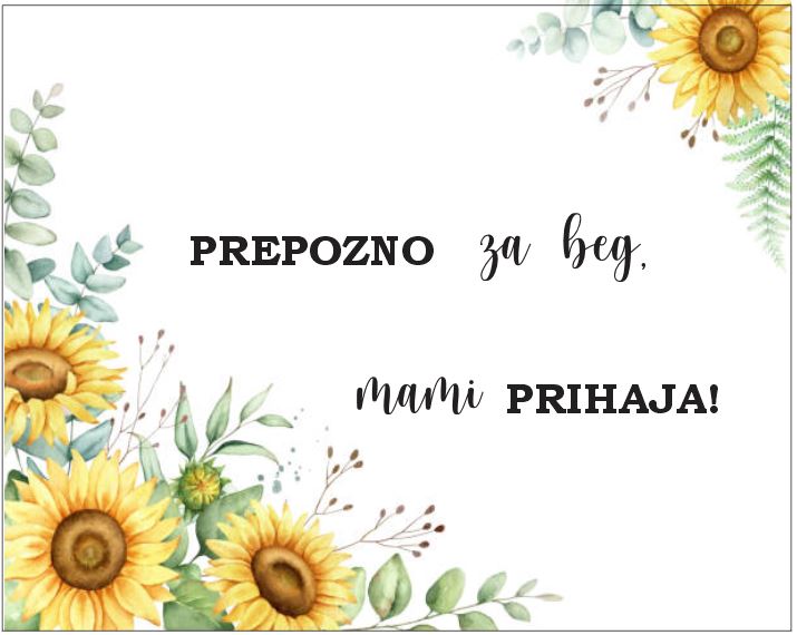 Naj vaš mali pomočnik na poročni dan poskrbi za nasmeh na obrazih gostov! Naša unikatna lesena tablica s simpatičnim napisom “Prepozno za beg, mami prihaja” bo popoln dodatek za vašega malega spremljevalca na poti do oltarja.