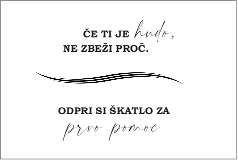 Na vsaki popolni poroki pride prav kotiček za prvo pomoč, kjer si lahko svati osvežijo videz ali rešijo drobne nevšečnosti. Naša čudovita lesena tablica “Prva pomoč” bo popoln dodatek k škatli, napolnjeni z uporabnimi malenkostmi, kot so vlažilni robčki, obliži, lasnice in osvežilni bonboni.