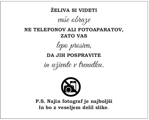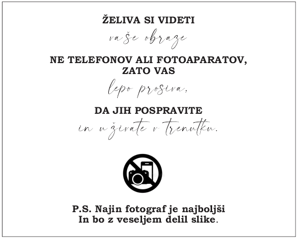 Naša lesena tablica z nežnim sporočilom ženina in neveste vabi, da se popolnoma prepustijo trenutku – brez ekranov.