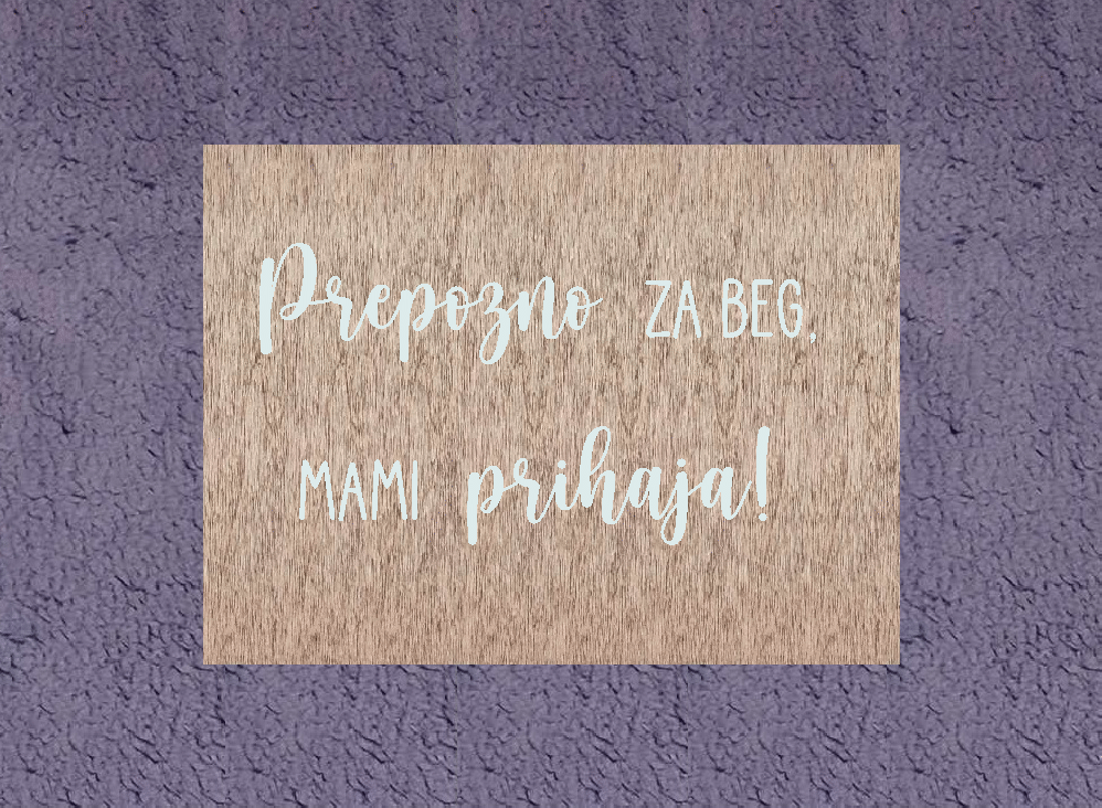 Lesena tablica “Prepozno za beg, mami prihaja” – prikupen dodatek za vašo poroko!
